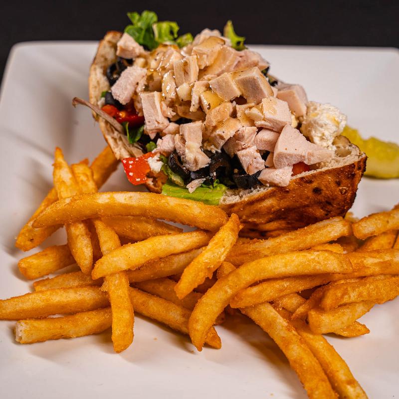 Featured menu items include our Exclusive Favorites like The Prime Rib Sandwich, House Smoked Beef Brisket, Not Your Average Pizza Log and so much more.
